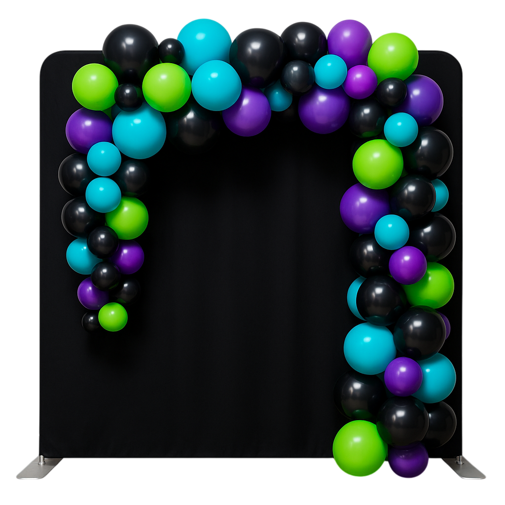 Explore sample photos showcasing the creative possibilities of our photo backdrop setups. Every backdrop pictured is available for use and sized at 8x8ft — perfect to pair with our photo booths and instantly elevate your event. Each balloon garland is custom-designed, offering endless options in color palettes, length, size, and style. Every detail is customizable to match your vision and make your celebration the talk of the town.